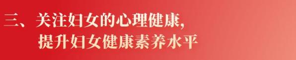 女性不仅在家庭中承担着关健的养育角色,在社会中也承担着重要的劳动职责。在女性的全生命周期中,不仅要面对发育、生育、绝经等生理历程,还要应对事业、家庭、人际关系等诸多社会问题,这些都是影响女性心身健康的客观因素。女性健康是全民健康的基石,而心理健康更是女性整体健康的核心内容,特别是在青春期、孕产期、更年期几个特殊时期更需要做好心理保健,针对妇女生理不同时期和心理特点,提供心理健康服务。开展咨询并指导妇女掌握基本的心理调适方法,全面促进心身健康,促进家庭幸福和社会和谐。同时,广泛开展妇女健康教育及健康促进。加大妇女健康知识普及力度,发挥健康科普专家作用,持续深入开展健康科普宣传教育。因地制宜开展营养和膳食指导,提高妇女对营养标签知晓率。面向青春期、孕前、孕产期、哺乳期和更老年期妇女进行膳食指导。定期开展孕妇、产妇、乳母等妇女营养监测和评估,提高妇女营养水平,预防减少贫血患病率,提高健康认知水平,增强“健康第一责任人”的意识,促进健康行为。原标题:《2021—2030年“两个规划”专家解读系列之一妇女与健康》