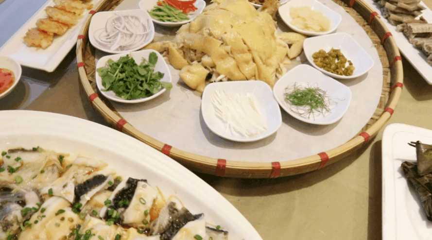 清蒸无骨山泉吊水鲩、手机先食白切鸡