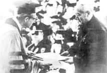 从1942年吴富恒离开哈佛大学回国参加抗战,到1982年回到哈佛大学接受这一荣誉学位,整整四十年,中国发生了天翻地覆的变化。正如在哈佛大学授予吴富恒法学博士证书的证词中所提到的:“在危险的年代里,这个爱国教育家(吴富恒)坚持标榜教育和学术,把它作为建设一个极大的、富有生命力的社会的基础。”充分肯定了吴富恒先生为中国的革命和教育事业作出的卓著贡献。他是第一个在中国做大学校长的哈佛大学毕业生,也是第一个荣膺哈佛大学荣誉法学博士的中国学者。身着中山装的吴富恒先生,到美国哈佛大学接受荣誉法学博士学位证书,为山东大学,为中国学者赢得了无上的荣誉和尊严,这也是他奋斗一生获得极大成功的佐证。