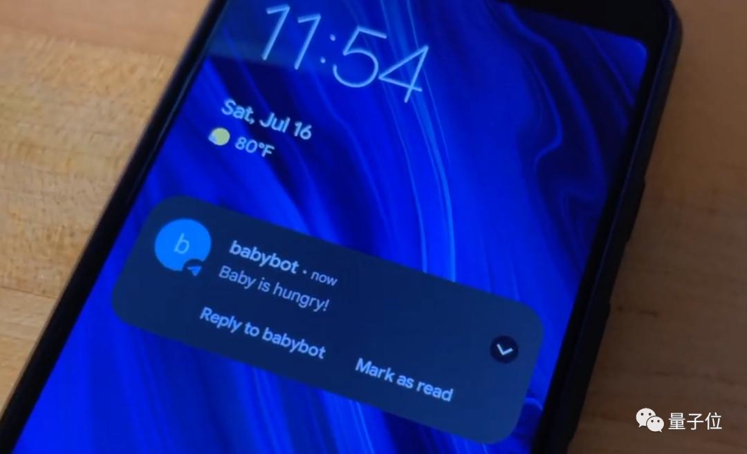 Caleb让程序一旦判定宝宝的饥饿可能性达到100%,就给他的手机发送通知。