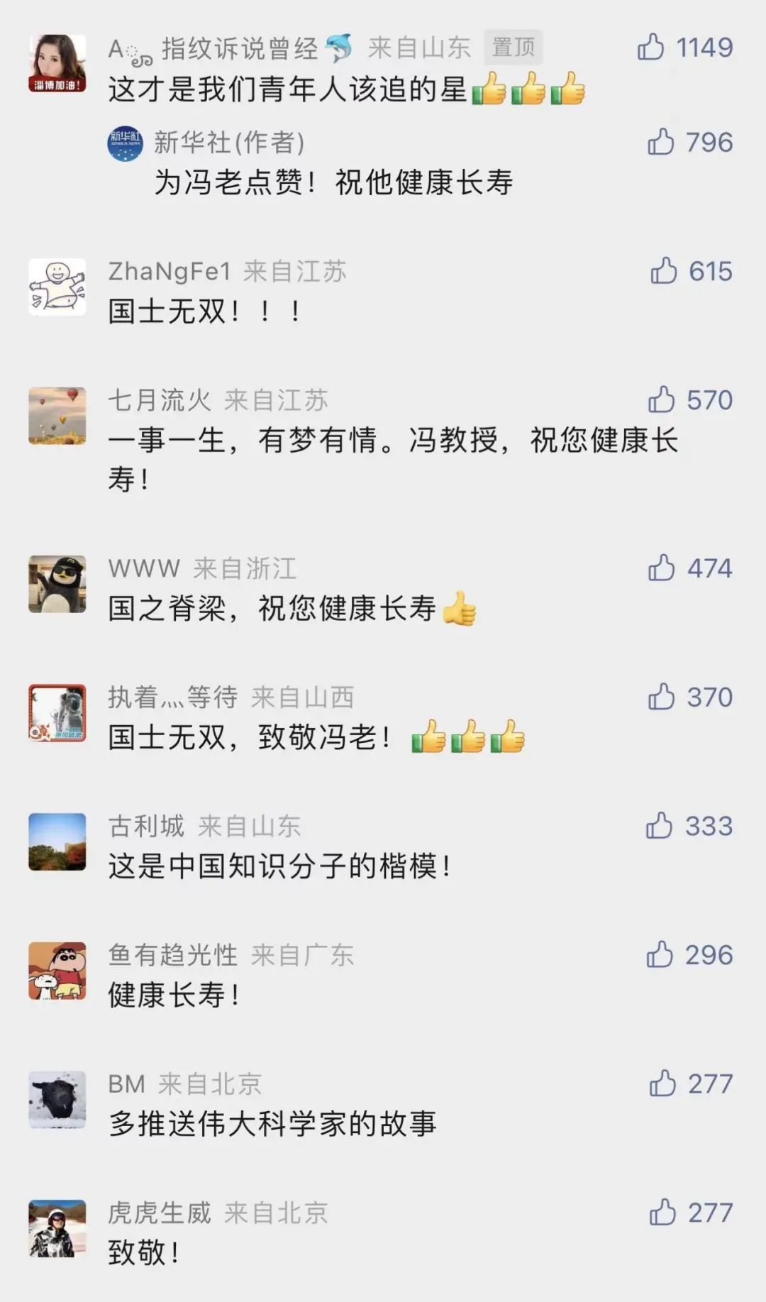 读者纷纷留言表达对冯老的祝福与赞美