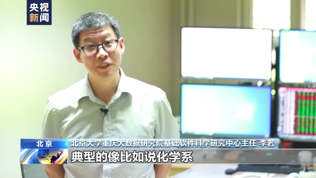 北京大学重庆大数据研究院基础软件科学研究中心主任 李若:典型的像比如说化学系,在我们的印象中是瓶瓶罐罐做实验,但是在现代的化学系,几乎有超过三分之一的科学家,实验过程是在解一个自洽场迭代(求解)密度泛函方程。这个方程根据它的应用背景,把它最后设计转换成一个算法,算法的底层会变成一个计算程序,这个程序里面所有的基础的计算就需要一个科学计算软件去实现。