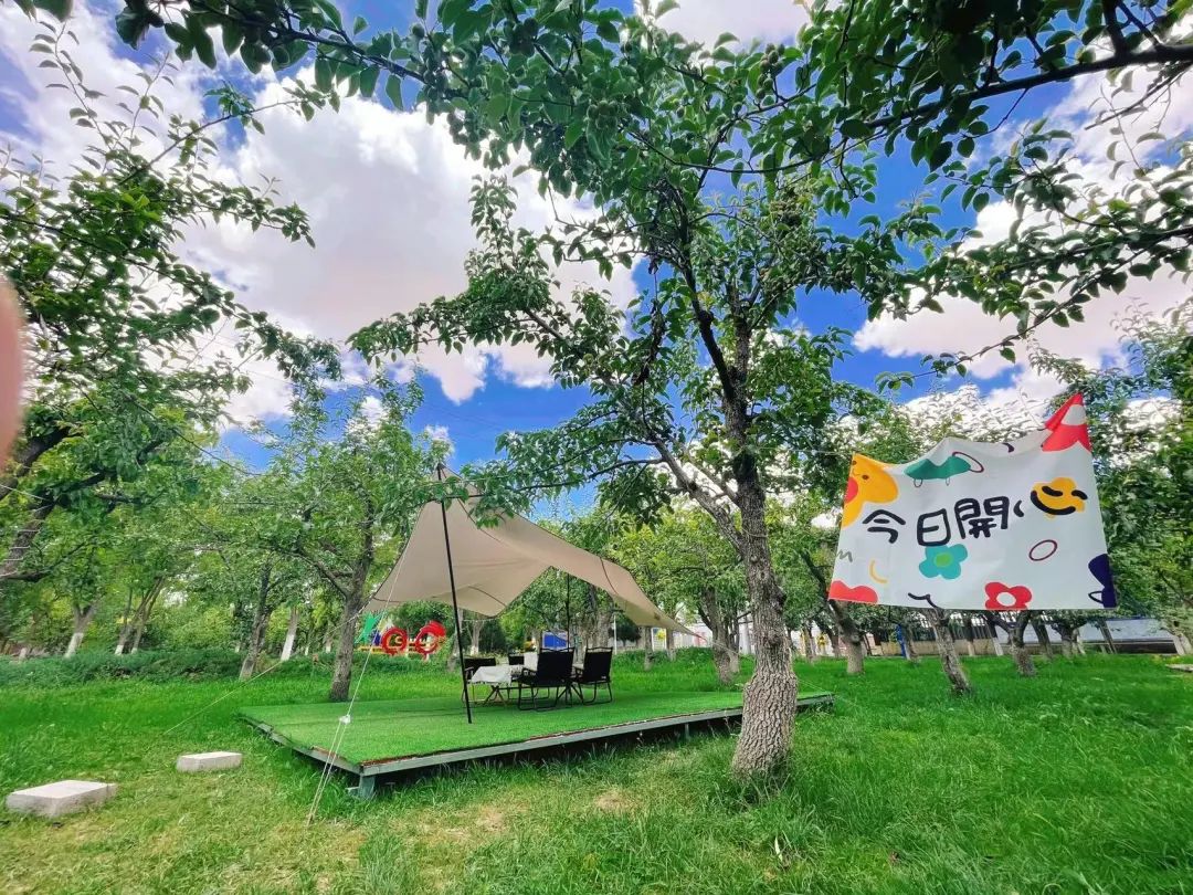 “风露时光”野奢营地位于双湾镇陈家沟村文昌园。林地间,架着北欧风帐篷、天幕。风吹叶动,阳光透过叶片罅隙,洒在身上,带来夏的芳菲。约上一众好友驱车30min,就可以享受一场阳光和煦版露营BBQ~,三五好友、带上狗子、带着野餐的蔬果零食,围坐闲话,好不惬意。