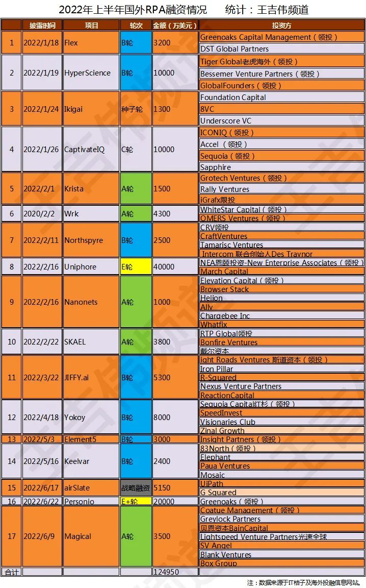 2022上半年全球RPA融资盘点:A+B轮融资占六成,国产RPA进入“C轮时代”
