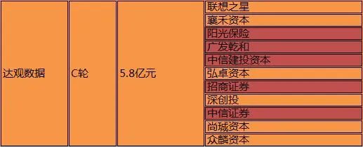 5、达观数据完成5.8亿元C轮融资3月9日,文本智能处理与办公智能应用供应商达观数据宣布,已于近日完成5.8亿元C轮融资。本轮投资方包括中信证券、招商证券、广发证券和中信建投四家证券集团,以及深创投、襄禾资本、弘卓资本、尚珹资本、众麟资本、联想之星、阳光保险集团等。