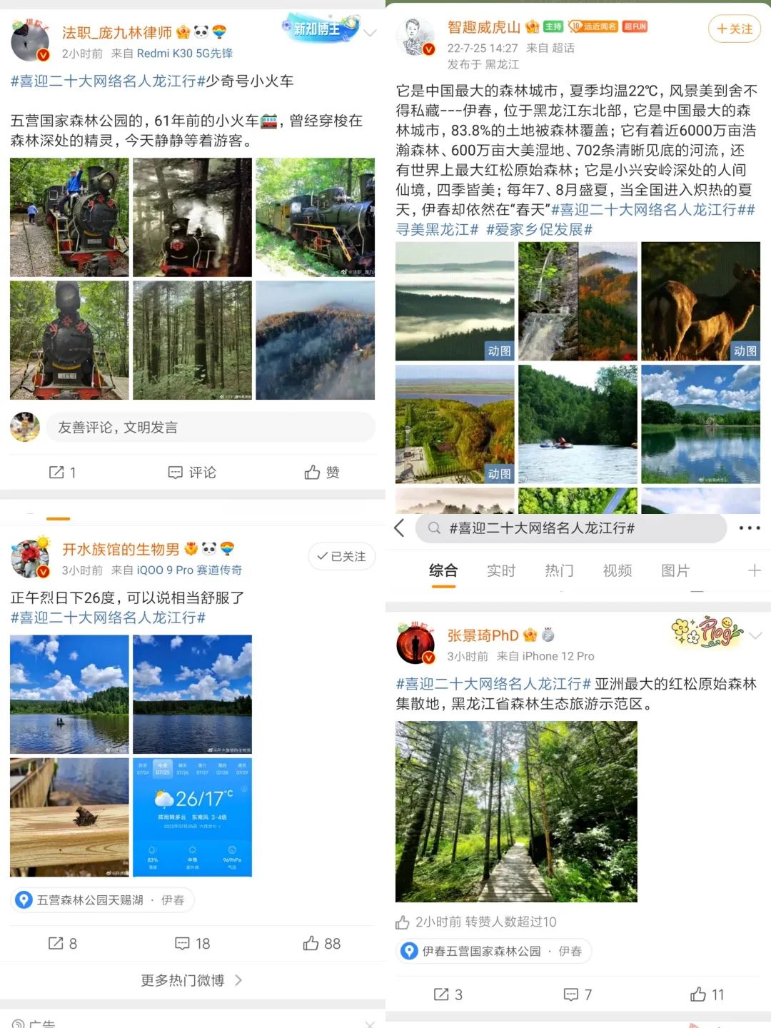 #喜迎二十大网络名人龙江行#话题冲上热搜!网络名人点赞伊春!