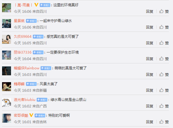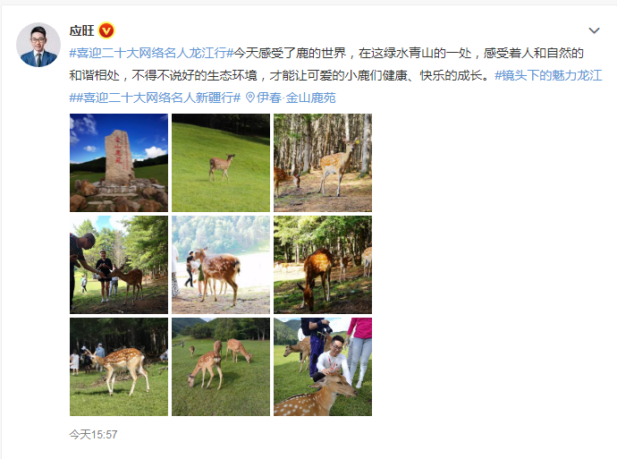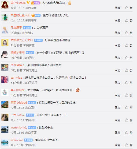 “今天感受了鹿的世界,在这绿水青山的一处,感受着人和自然的和谐相处,不得不说好的生态环境,才能让可爱的小鹿们健康、快乐的成长。”——@应旺
