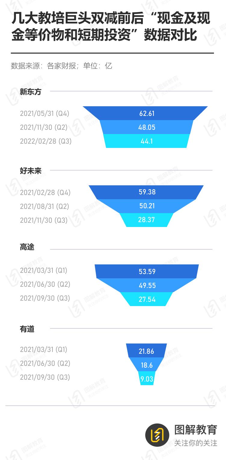及至现在,一年已过去,现金流问题依然困扰着大部分教培公司,尤其是有道,最新一季度里,有道的“现金及现金等价物和短期投资”,甚至已少于主营业务成本。