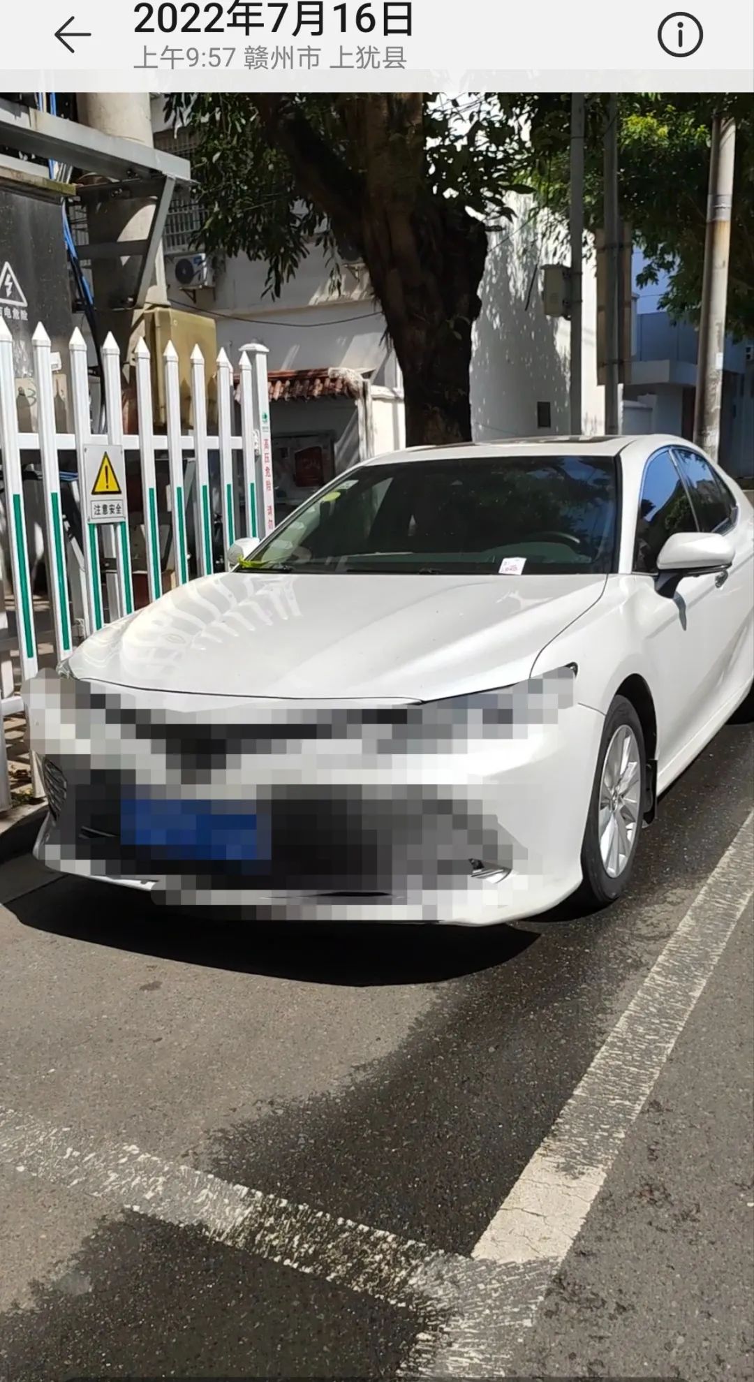 7月16日上午和往常一样将车停在上犹县水南大道与文兴路交叉路口,车子是按规定停放在地面白色泊位线内,离开之前还确认了是在停车线白线内。