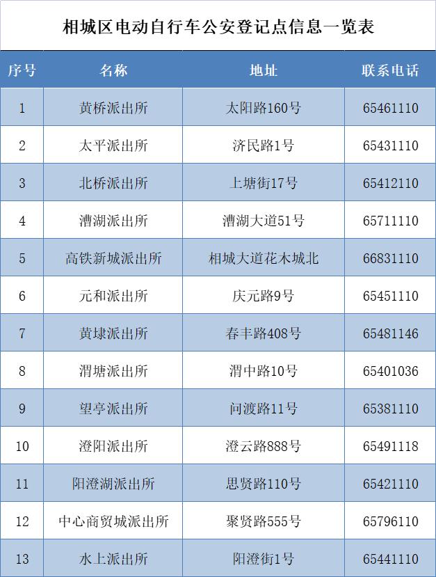 公安登记点信息一览表