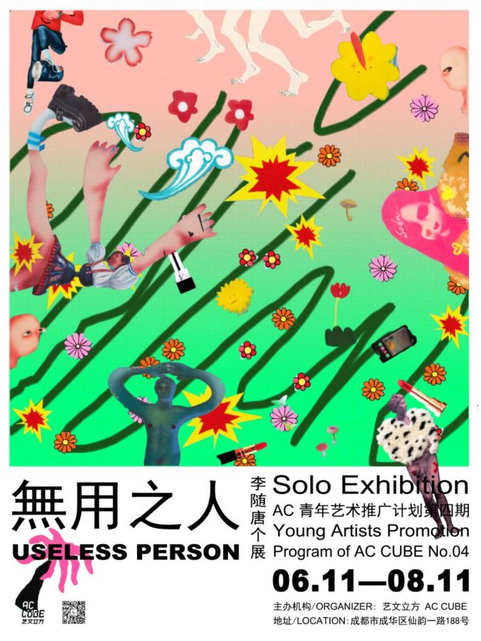 在本次展览《無用之人》中,受邀艺术家李随唐将绘画和装置相互结合,通过极具张力的线条、大胆的色彩运用,描绘了他的精神世界。作品结合自己的生活经历、身边友人相关的细节和无聊的琐事,用最贴近自我风格的表现方式记录创作,希望给予观者更多的联想思考。展览时间:2022年6月11日—2022年8月11日