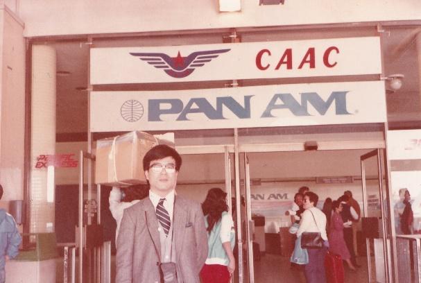 在洛杉矶机场乘坐中国民航(CAAC)的班机回国