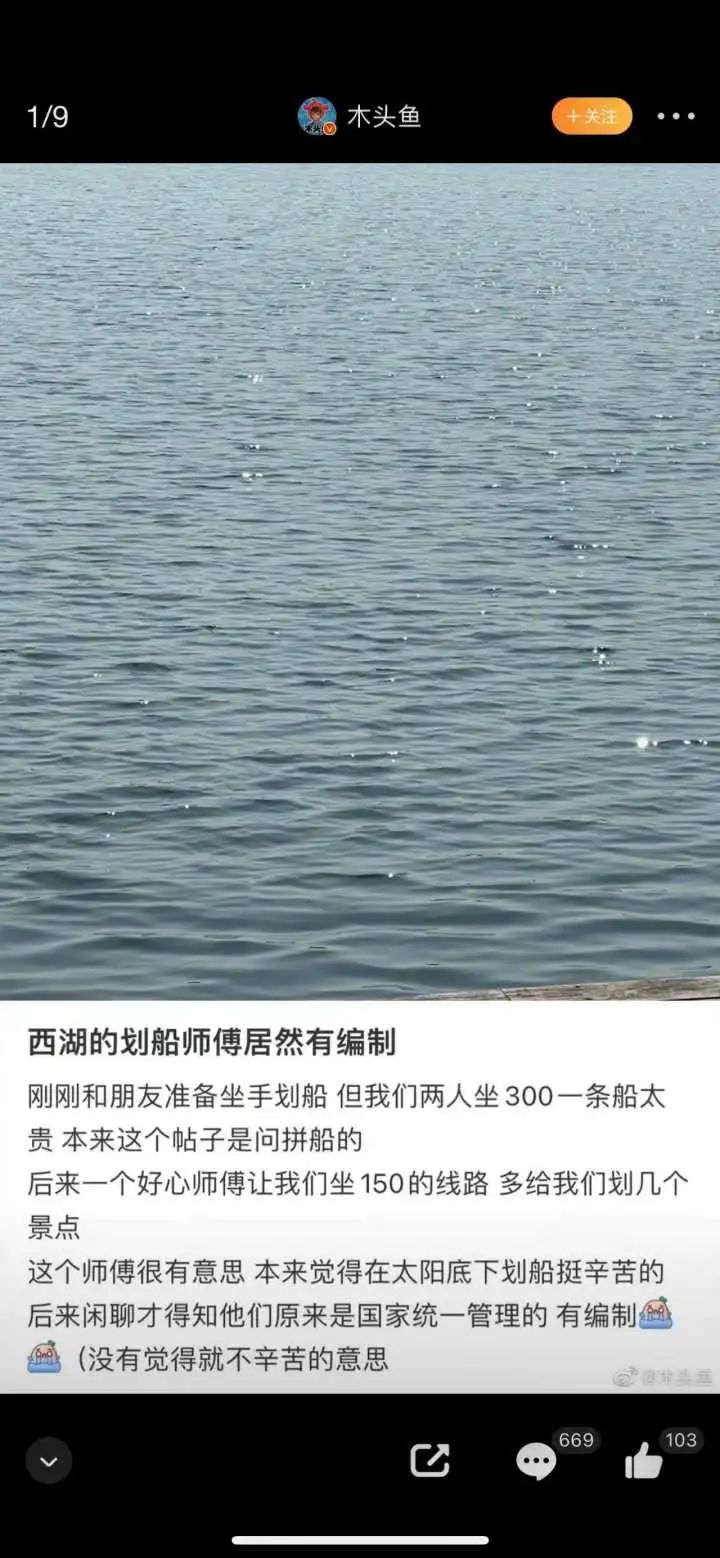 原标题:《“西湖划船师傅有编制”冲上热搜,刚刚,西湖水域管理处回应:不属实》