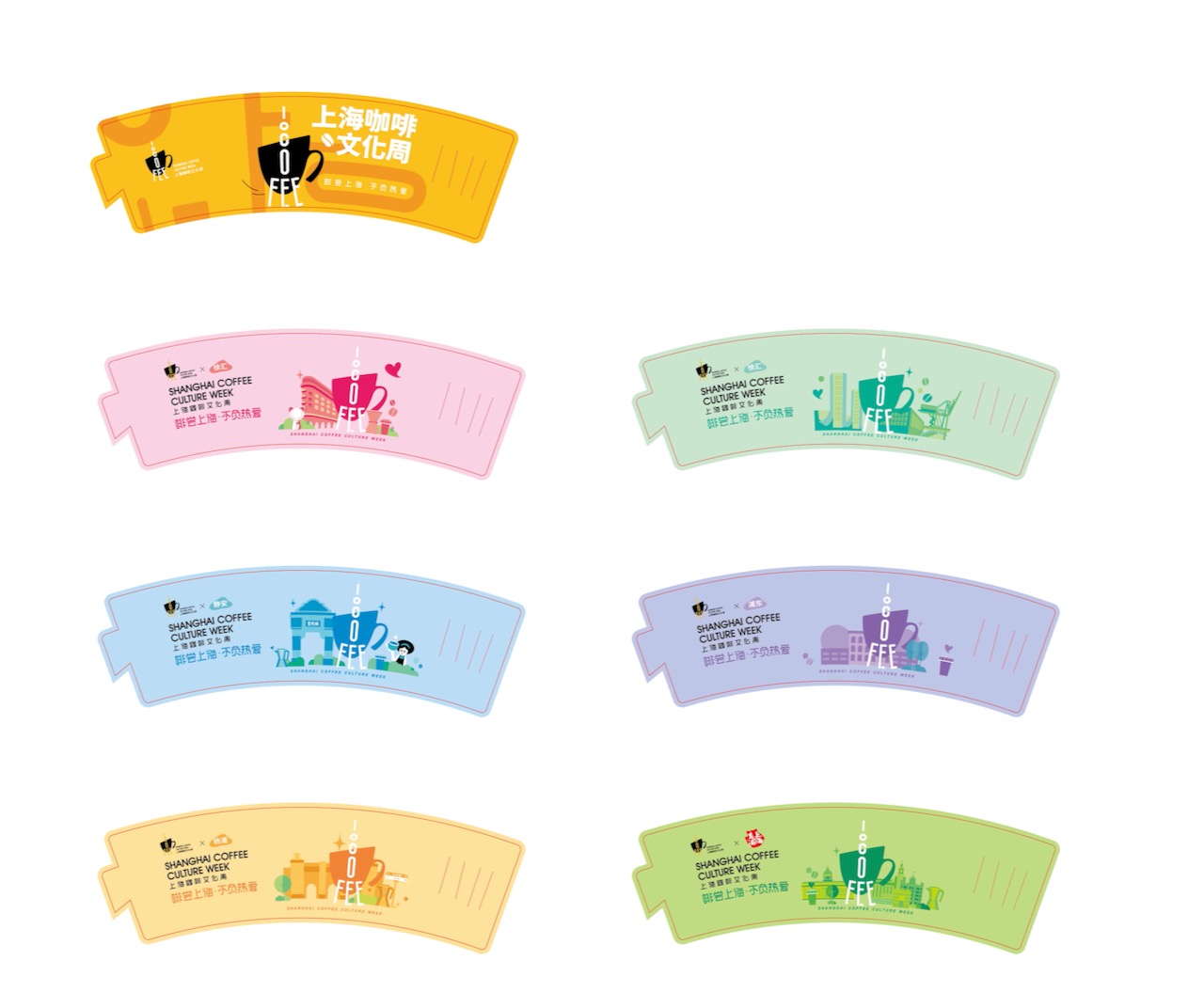 本届咖啡文化周联合了上海1000多家咖啡门店,将发放150万套25款特色咖啡杯套