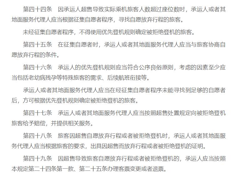此外,在中国民航局2015年发布的《公共航空运输航班超售处置规范》中,对备受争议的“超售情况下乘机优先规则”问题做出了明确规定: