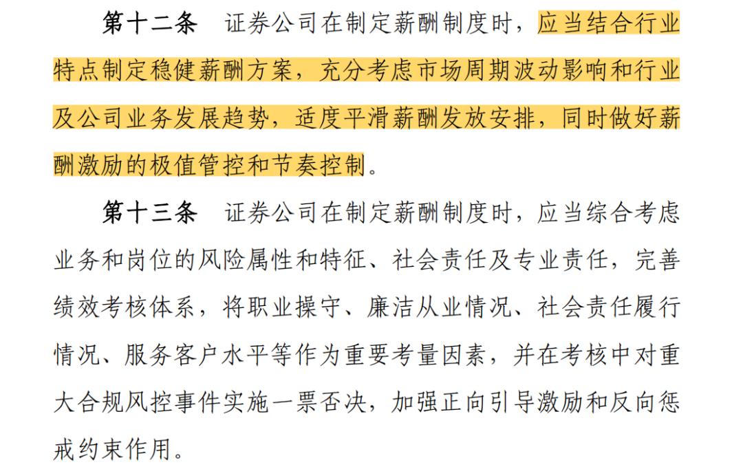 今年5月13日,中证协发布《证券公司建立稳健薪酬制度指引》,对券商内部薪酬制度做出了具体规范,自发布之日起施行。