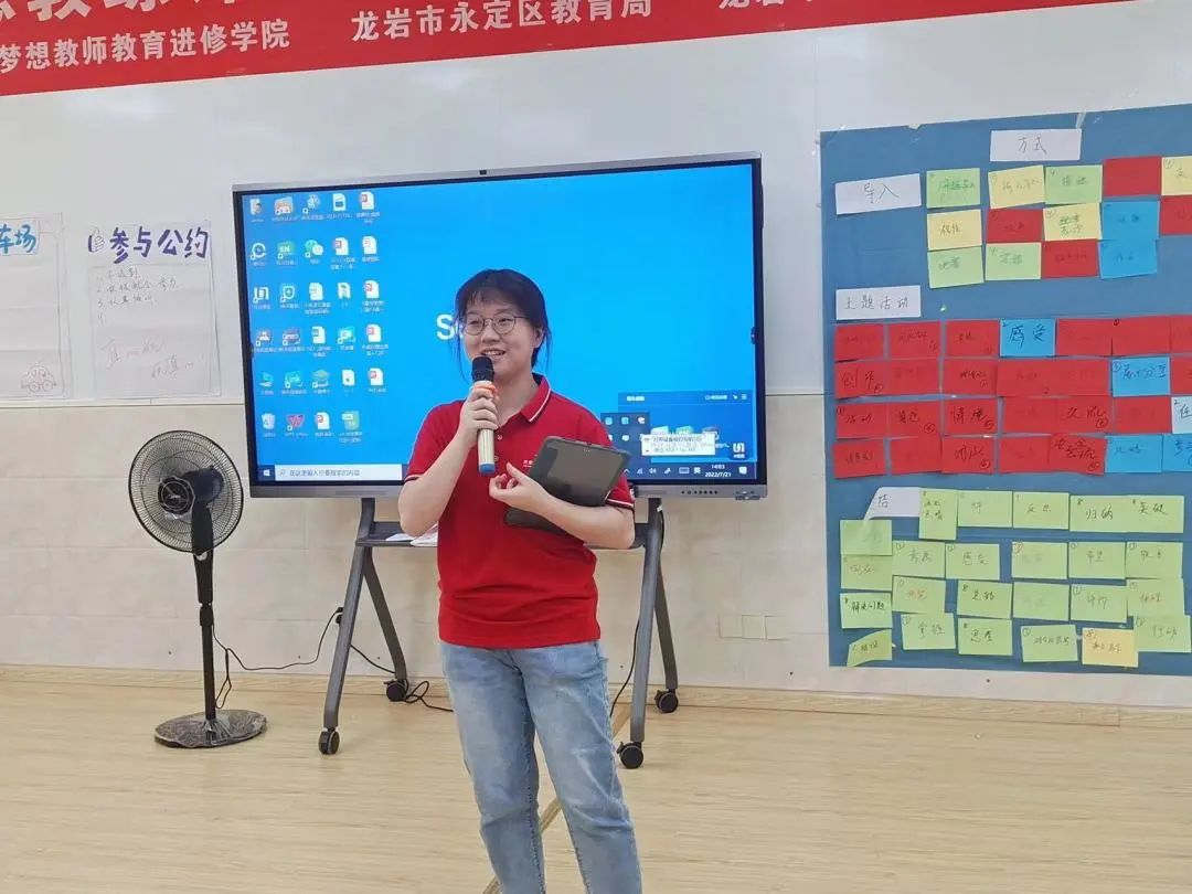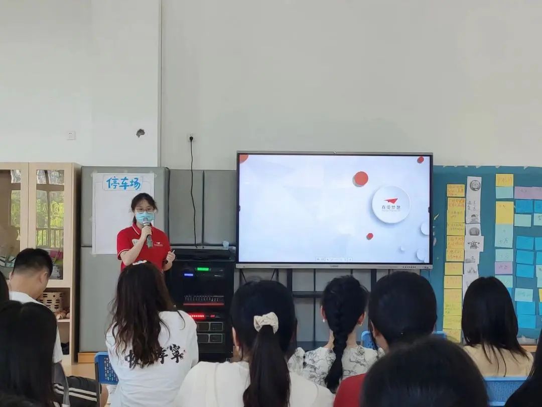 南区01 志愿者合影在南区1号线的第1站厦门市海沧区东瑶学校的培训过程中,陈静莹给老师们分享了自己从小到大受到多位老师对自己性格和学习方法等多方面的影响;符俊茜给老师们分享了曾经有一位老师让全班同学第一次过“六一”儿童节,给大家打开了“新世界大门”的故事;彭嘉璇则分享了自己作为学生,是如何因素养教育的影响而养成了“自主”、“独立”的性格。