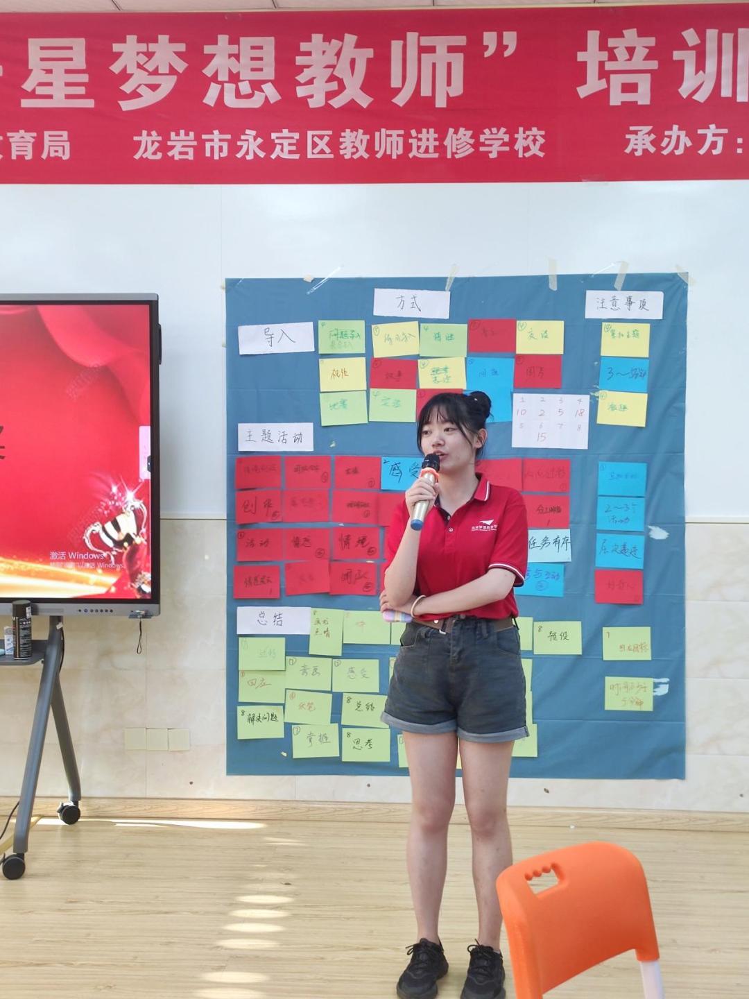 本次活动我对自己很惊喜的地方,是在带领游戏的过程中,我意外地发现自己在老师面前是从容、不怯场的。收获最深的是在参训老师进行示范课讲解时,感受到了团队的输入变成了老师的输出,大家也把知识内化于心,外化于行。