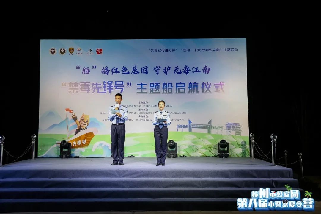 “老街寻宝”游戏第一天晚上,“小警察”们还一起参加了由苏州市公安局与苏州市禁毒办、常熟市禁毒办共同举行的“‘船’播红色基因 守护无毒江南”——“禁毒先锋号”主题船启航仪式。