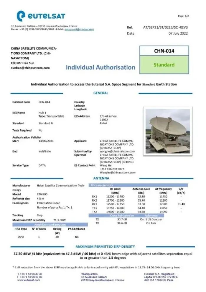 日前,中国电科网络通信研究院获得国内首例无人机卫星通信系统入网欧洲卫星组织(以下简称欧卫)认证。