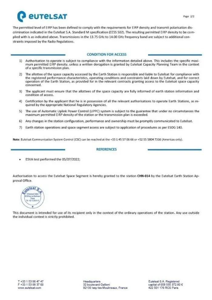 这是国内无人机卫通产品首次获得欧卫颁发的ESVA入网许可,进一步提高了产品的市场竞争力,将有效促进国内卫通设备性能指标提升,助力卫星通信生态圈蓬勃发展,加速产品与国际接轨。