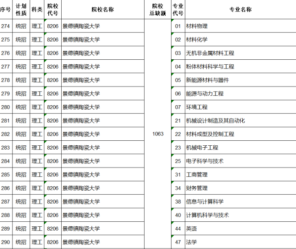 这1063个缺额涉及材料物理、材料化学、无机非金属材料工程、环境工程、工商管理、计算机科学与技术、英语、法学等17个专业。