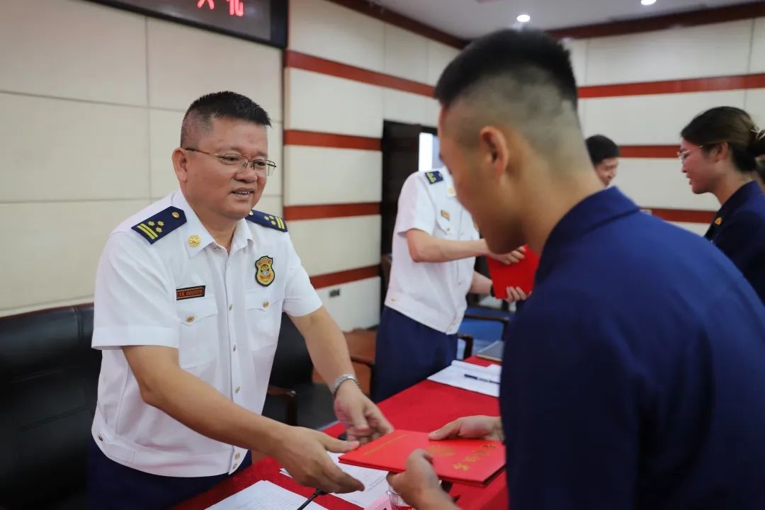7月29日上午,海南省消防救援总队召开2022年新招录政府专职消防员入职教育培训结业仪式。