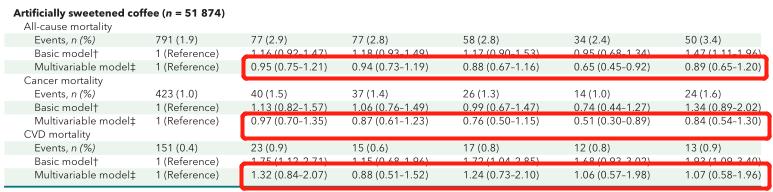 基于如今人工甜味剂饮料(ASBs)盛行。该研究同时还调查了添加人工甜味剂的咖啡与死亡率之间的关系。