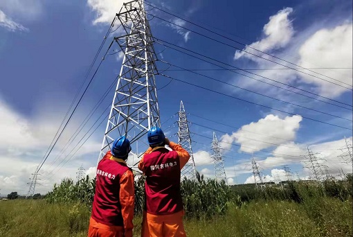 国网吉林电力员工巡查输电线路,保障迎峰度夏电力安全可靠供应。