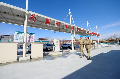 国网吉林电力员工在长春蔚山路绿能充换电站检查电力设备。吉林省政府秘书长安桂武,省政府相关部门负责人,公司总经理助理兼办公室主任王抒祥、副总工程师兼东北分部主任张福轩、副总工程师兼发展部主任冯凯,总部有关部门、国网吉林电力主要负责人参加会谈。