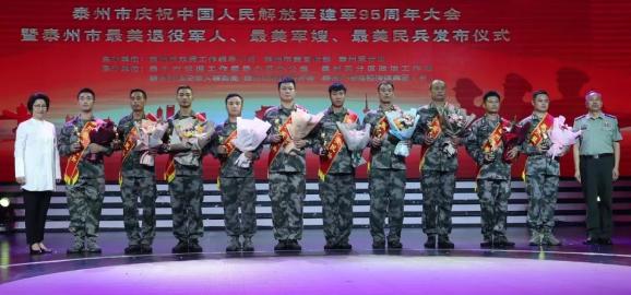 今年,我市开展了“最美退役军人”评选活动,最终周洛阳等10名同志当选。市委副书记汤成快,市委常委、秘书长徐克俭为他们颁奖。去年以来,我市还开展了“最美军嫂”最美民兵”评选活动,市委常委、宣传部部长,副市长刘霞,市人大常委会副主任沈明刚为邵圆圆等10名“最美军嫂”颁奖;市委常委、泰州军分区司令员廖鹏,市政协副主席查学斌为刘波等10名“最美民兵”颁奖。现场,还视频连线了“杨根思连”,与现场观众共同重温了“三个不相信”的英雄宣言。