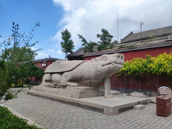 现位于开元寺的巨型赑屃,是2000年6月22日在正定府前街出土的。赑屃为青石质,长8.4米,宽3.2米,高2.6米,首径2.5米,鼻孔直径0.21米,残重107吨。为五代时期遗物,有极高的文物价值,在国内外实属罕见。俗称“天下第一碑”的西岳华山铭碑,其碑座残长4.8米,而正定赑屃座残长8.4米,可称现存碑座之最。有关专家皆称其为“天下第一赑屃”。