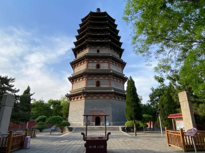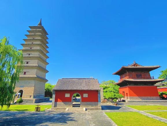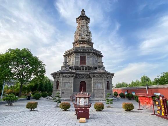 开元寺始建于东魏兴和二年(540年),寺内建筑布局严谨,前为天王殿,东为钟楼,西为须弥塔,相对而立,后为法船殿(现存遗址)。这种塔阁相对而立的平面布局,在世界上仅存日本的法隆寺和中国的河北正定开元寺,是研党早期以塔为中心转向晚期以殿阁为中心过渡时期的珍贵实例。