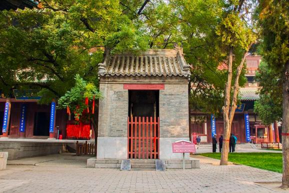 矗立在隆兴寺内的隋龙藏寺碑,是国内现存楷书碑刻鼻祖。此碑刻刻于隋开皇六年(586年),碑额楷书“恒州刺史鄂国公为国劝造龙藏寺碑”。碑通高3.15米,宽0.9米,碑文正面楷书30行,每行50字,共1446字。碑文书法方整有致,结构严谨,朴拙而不失清秀,庄重而不板滞,微露魏隶遗韵,是研究魏隶向楷书过渡时期书法艺术的重要碑刻,为中华名碑之一。欧阳修在《集古录》中首录此碑,近代康有为则称其为“隋碑第一”,后人称“楷书之祖”。