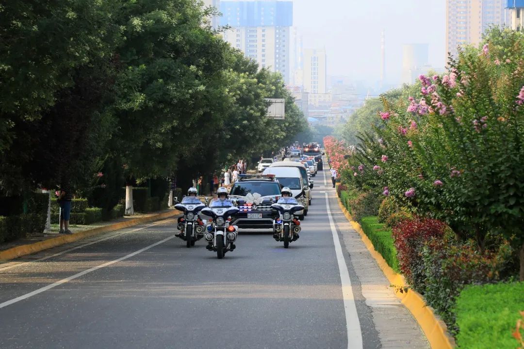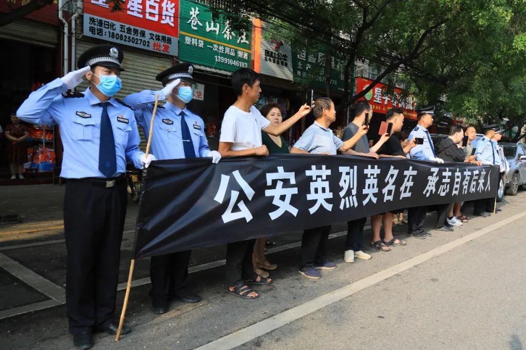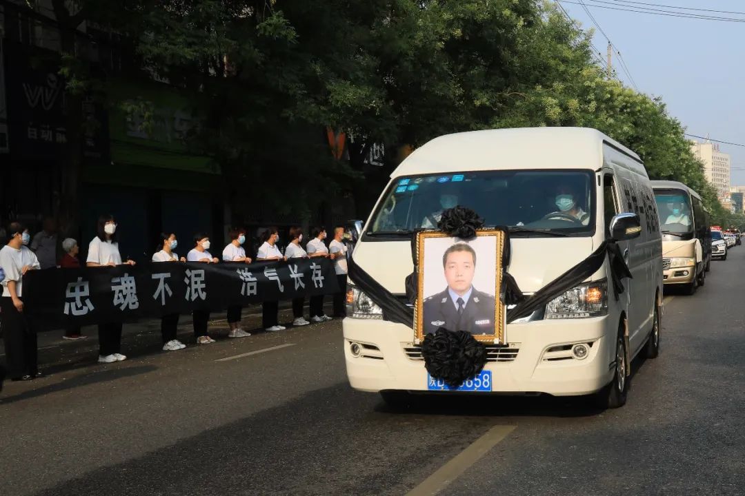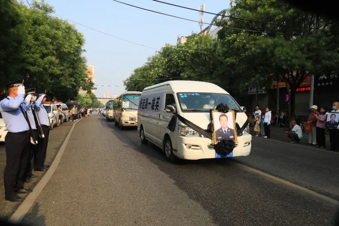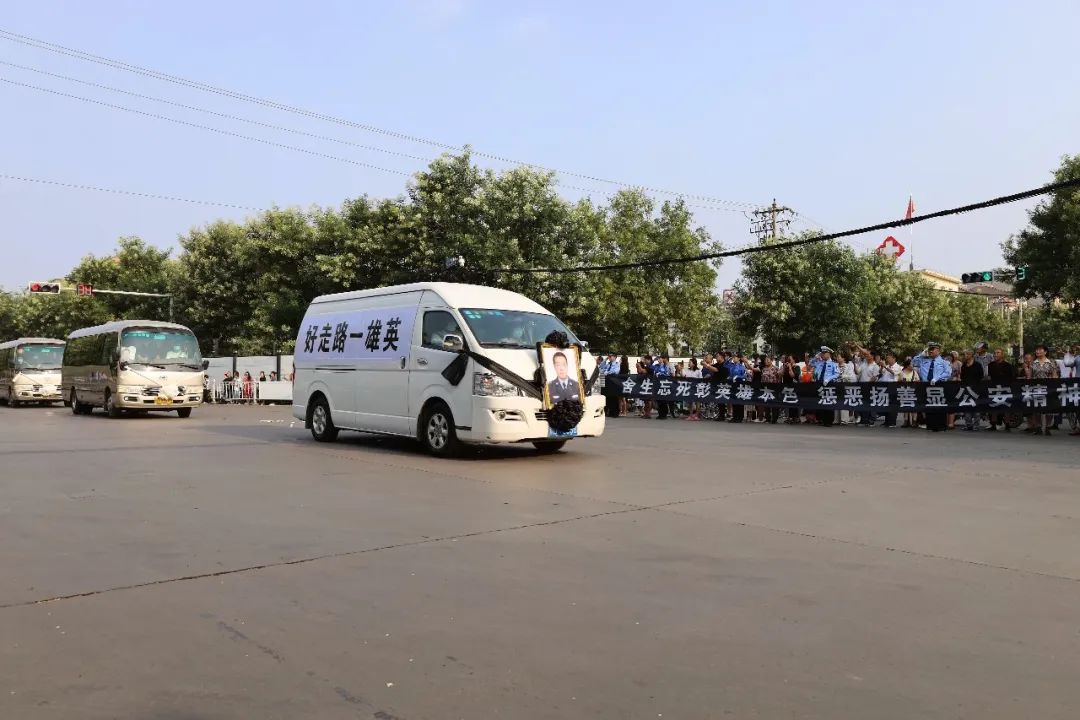 上午8时,在警车列队护送下,载着陈勇遗体的灵车缓缓驶向殡仪馆。街道两侧公安民警手持挽联,敬礼送别战友,自发赶来的群众肃穆站立,送别英雄的陈勇最后一程。