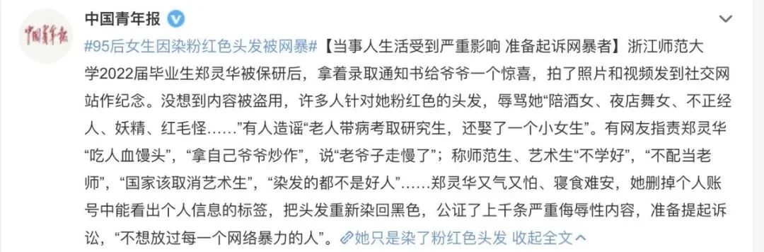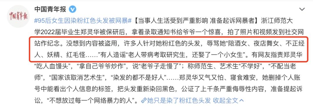 粉色头发女孩被网暴,这样的野蛮何时终结?