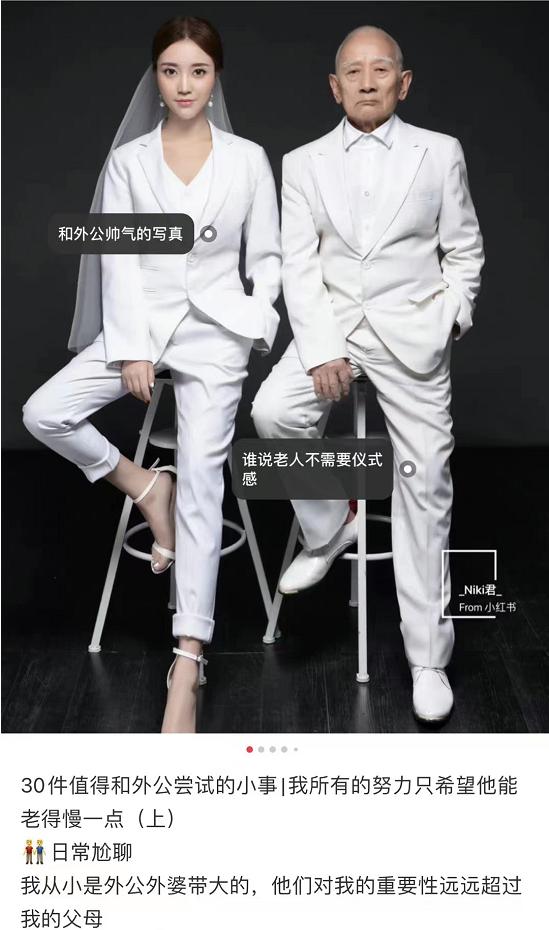 比如去年,有女生在网上发和外公的写真。