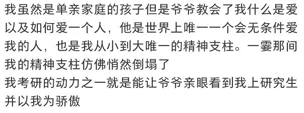 在女孩的原文案里,她写道:“我考研的动力之一就是能让爷爷亲眼看到我上研究生。”