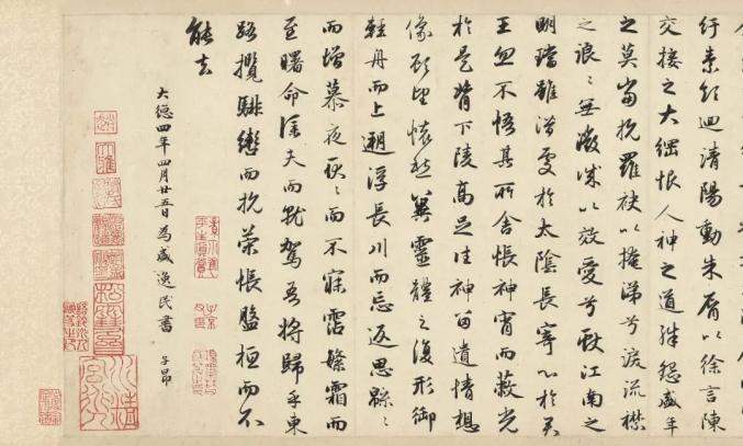 赵孟頫跋赵令穰《江村秋晓图》现藏于大都会艺术博物馆