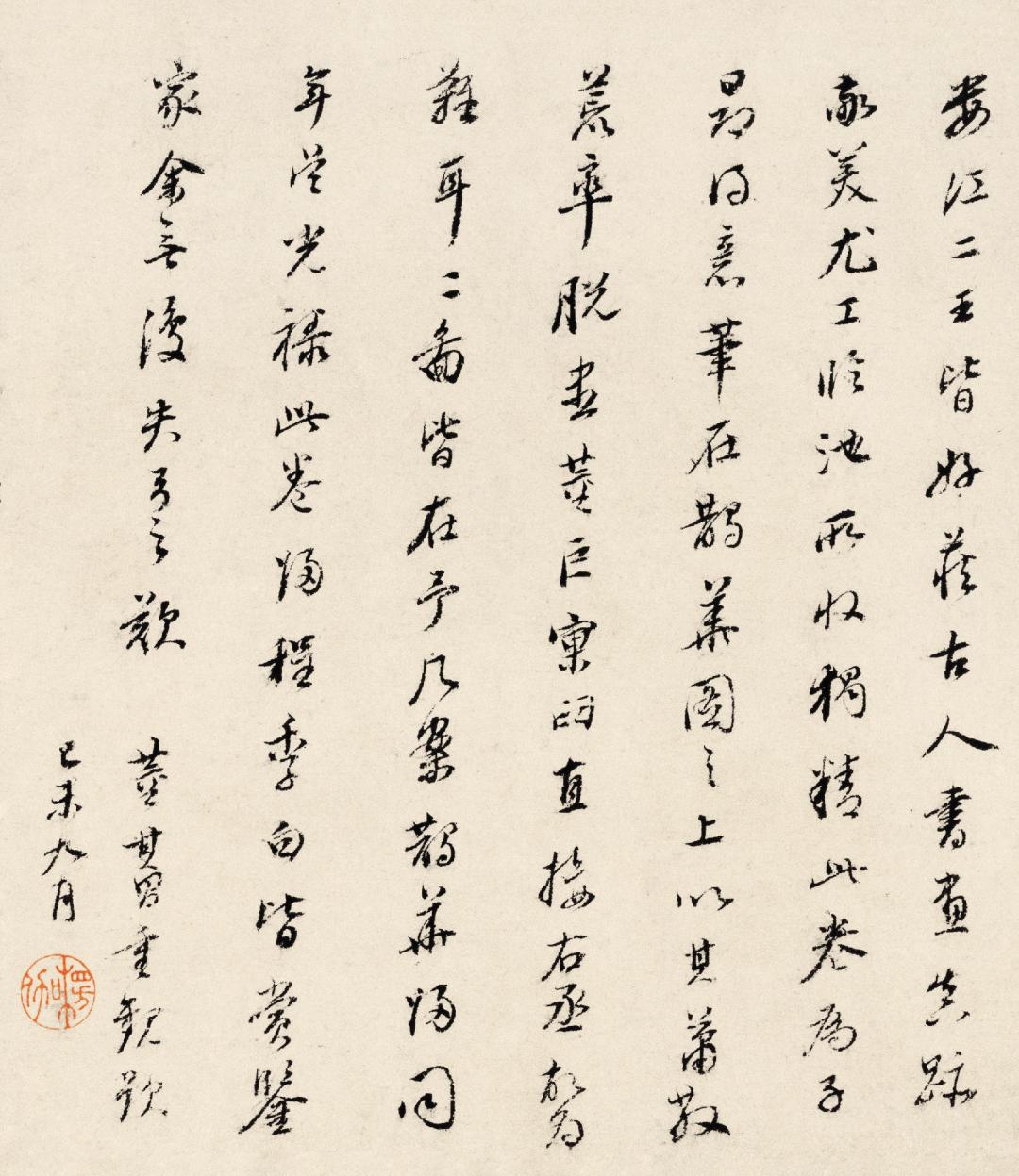 此卷为子昂得意笔,在《鹊华图》之上,以其萧散荒率,脱尽董、巨窠臼,直接右丞,故为难耳。