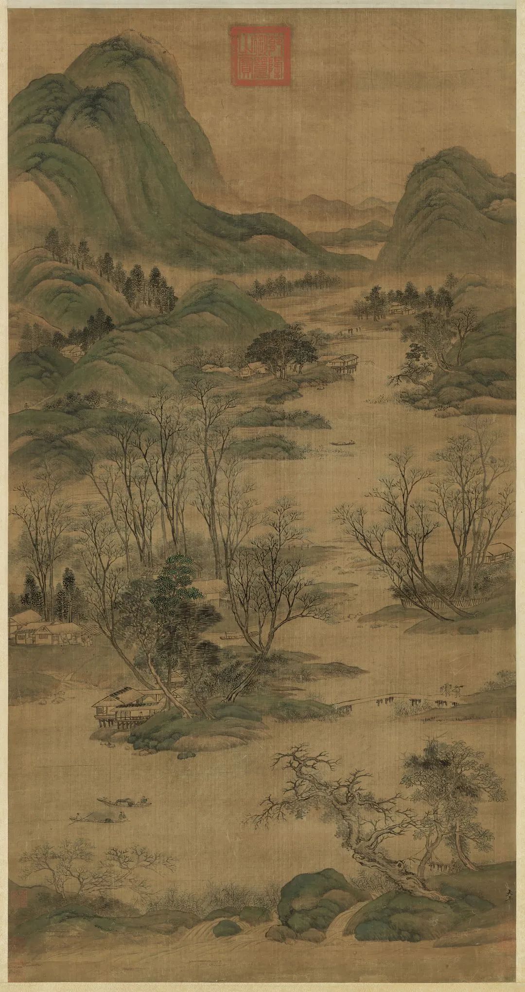 赵令穰《水村图》绢本设色,北宋,129.8 x 67.5 cm