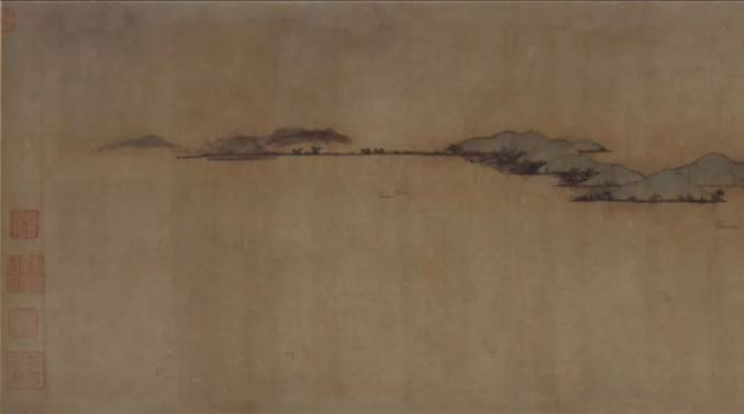 赵令穰《江村秋晓图》(局部)绢本设色,北宋,23.7 x 104.1 cm