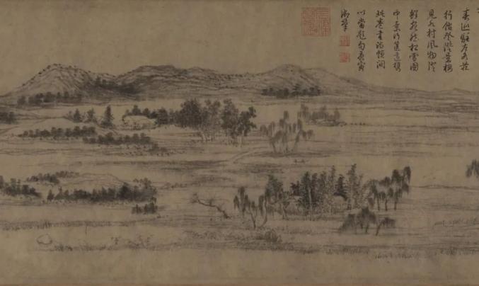 赵孟頫《水村图》纸本水墨,元,24.9 x 120.5 cm