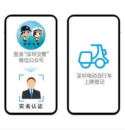通过登录“深圳交警”微信公众号,进入“星级用户”,实名认证通过后选择“电动自行车号牌申请”。电动自行车登记上牌现阶段实行预约办理模式(网上预录入资料-预约服务代办点-到场交验车辆)。