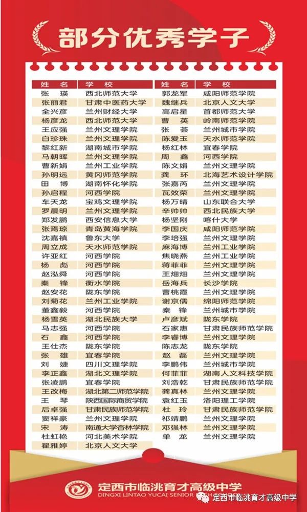注:报名时携带学生身份证,父亲身份证,母亲身份证,户口本(含学生本人的)毕业证原件,成绩单(外地学生)来源|定西市临洮育才高级中学