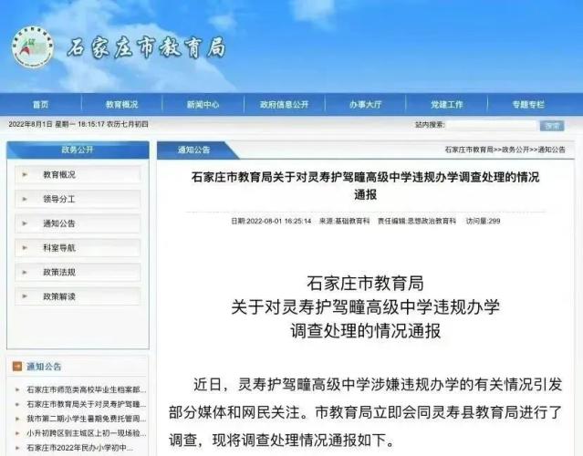 近日,网曝河北石家庄灵寿护驾疃高级中学涉嫌违规办学,导致200多名学生上了“假高中”没有学籍,引发关注。1日,石家庄市教育局通报,灵寿护驾疃高级中学是1998年经市教育局审批设立的民办普通高中学校。2019年3月,灵寿护驾疃高级中学委托河北汇纳教育投资有限公司开展2019年市域外招生工作。针对该公司违规与学生家长签订《保本科升学协议》并收取费用问题,教育局已责成其退款。目前,收取101名学生每人12000元的协议退款金额已全部退还。经核实,灵寿护驾疃高级中学2019级学生均具有普通高中学籍,并于2022年6月在灵寿县参加高考,取得普通高中毕业证书。(中国青年报)