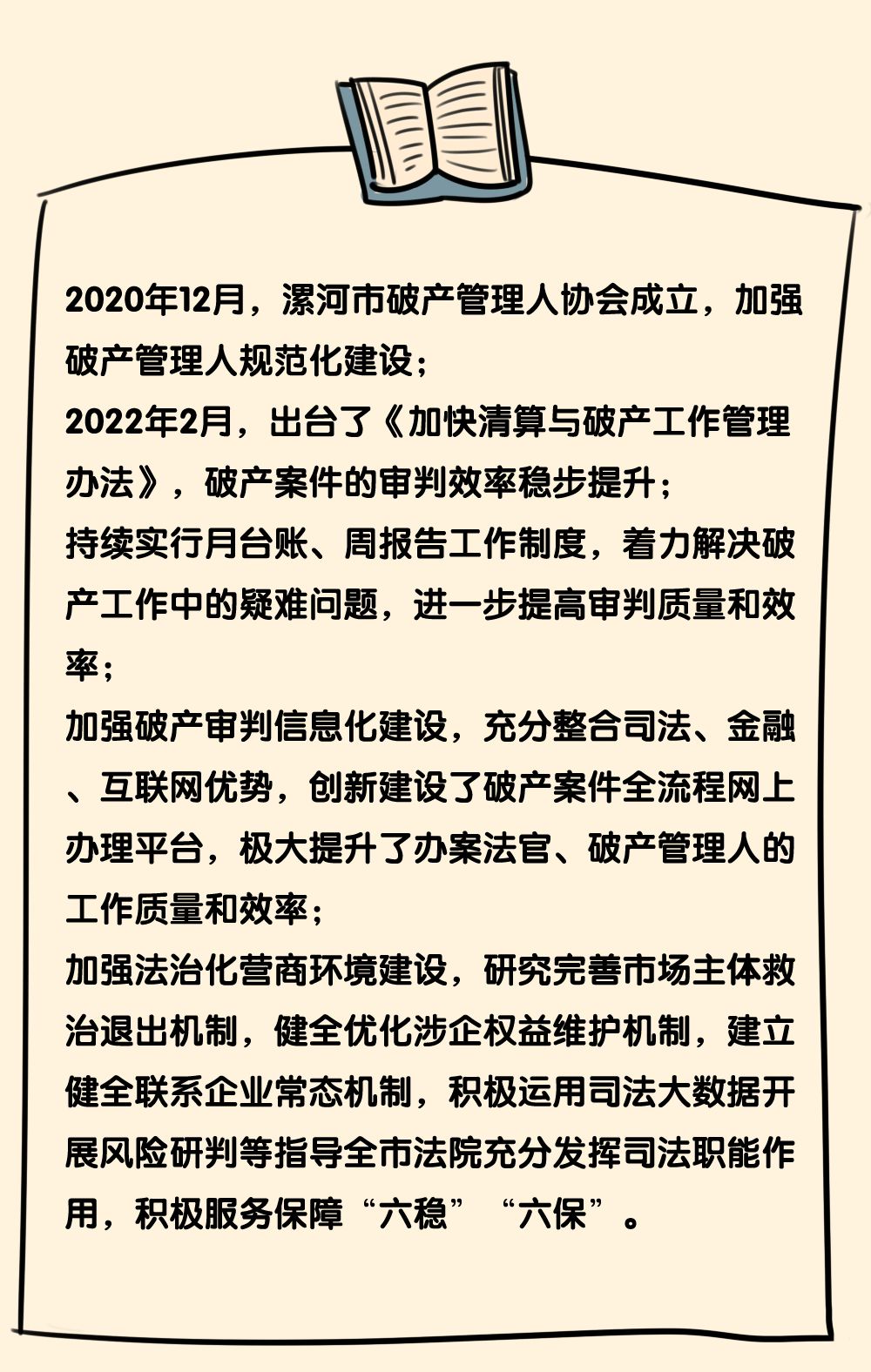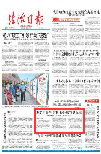 今日,法治日报头版以《办案与服务并重 提升服判息诉率》为题报道了漯河法院以高质量破产审判优化营商环境做法。漯河法院对破产审判专业化建设的持续推进,是河南省法院坚持“服务企业就是服务全省工作大局”理念结出的硕果。