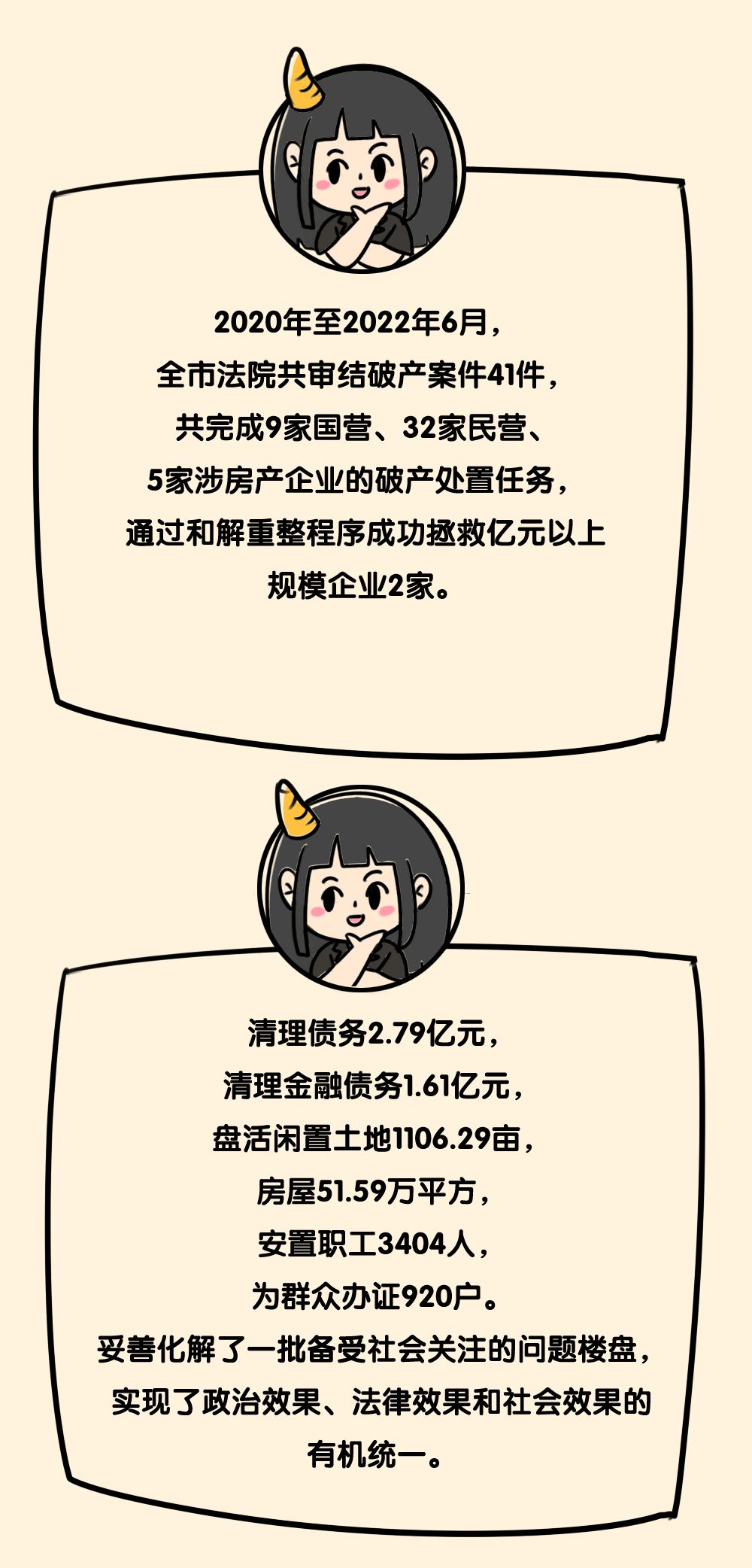 工人们忙忙碌碌,宣传口号提气增劲……近日,《法治日报》记者来到河南省漯河市森林湖小区二期项目工地和银鸽二基地项目厂房里,看到一派生机勃勃的景象。破产重整后的两家企业,从智能物业到企业发展方向,从产品设计到市场前景,充满了“重生”的力量。2020年至2022年6月,漯河市两级法院共审结破产案件41件,完成9家国企、32家民企和5家涉房产企业的破产处置,通过和解重整程序成功拯救亿元以上规模企业两家,清理债务2.79亿元,清理金融债务1.61亿元,盘活闲置土地1106.29亩。这些破产企业的涅槃重生,得益于漯河市中级人民法院“府院联动”机制的实施。