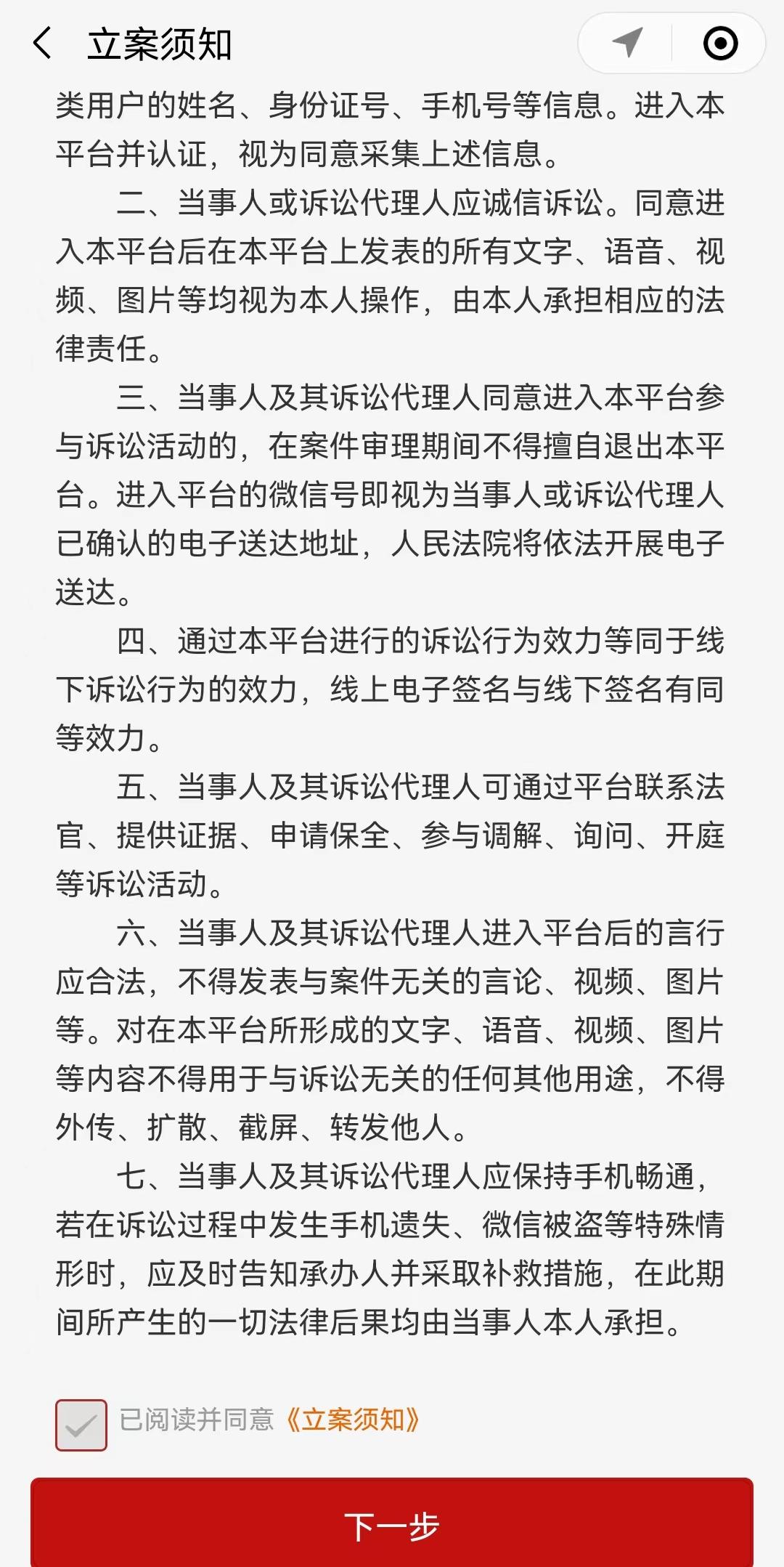 •第二步选择管辖法院进入网上立案申请页面后,要求当事人选择“立案法院”。当事人需遵守民事诉讼法关于级别管辖和地域管辖的规定,将材料提交到有管辖权的法院。