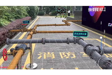抬起手机或平板电脑,打开APP,一根根地下管道浮现在眼前,这些虚拟影像都出现在真实的地理位置上,城市管理者可以查询管道情况。在办公楼平平无奇的空旷走廊里,平板电脑一扫视,“抬头”可以仰望星空,“低头”可以观赏海洋世界。